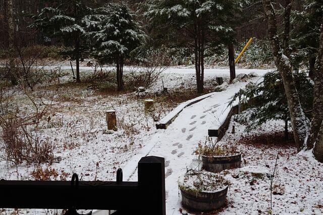 昨夜からシンシンと雪が降りました。今朝は5cm以上積もり。そろそろ雪掻きしないと。。の季節。保健休養地のメイン道路もキャンプ場経由に成ったと杜子春です。