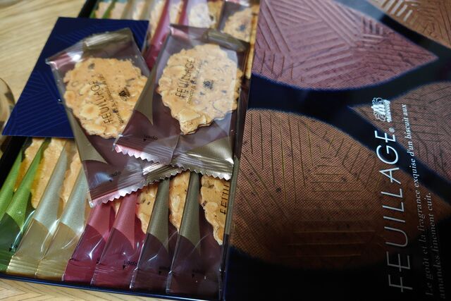 今回、生協さんから取り寄せました「モロゾフの焼き菓子」ナッツ香ばしい「ファヤージュ」の名前のお菓子。。包装紙は昨日ブックカバーに。。中味一つ戴きました。今朝は杜子春のバックの中にオヤツに少し入れました。