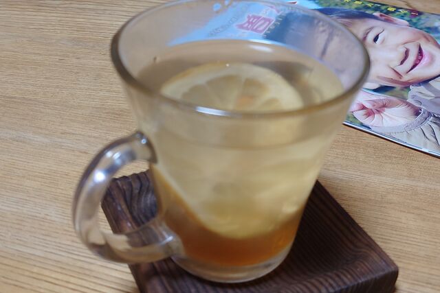 無農薬レモンに生姜蜂蜜を加えた。ハーブティーに加えたり、紅茶にこのレモンを入れたりしていましたが、レモン液ももう出尽くしだろうにと。。この酸っぱい蜂蜜汁に熱湯加えて。。濃厚なレモン液が身体の隅々へと沁み入る様です。。