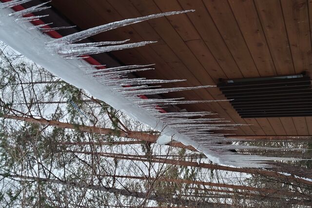 屋根の、軒下に鋭い槍先の様な「ツララ」当たると怪我しそうです。