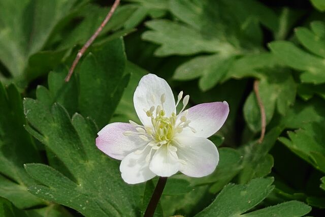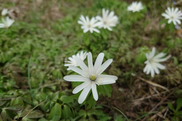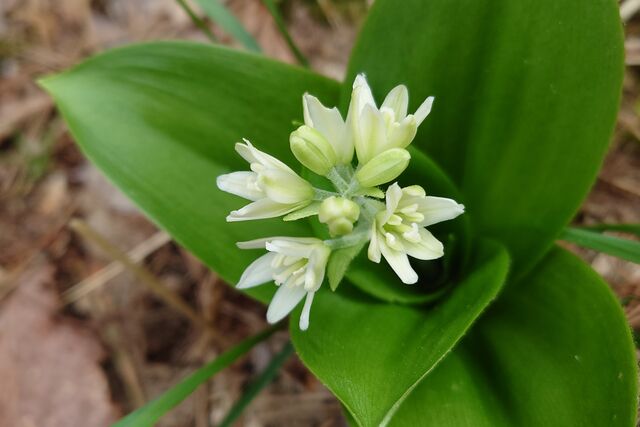 熊笹を鋏で切り‥苔の間からスックと伸びる芝も見付けては抜き取って…。枯れ枝を拾い…。時々休憩しては…。庭の配置を考えて…。今年も大きな「オオカメノキ」に沢山の昨年よりも多くの花が咲きました。。。そして昨年は咲き掛の花芽を食べられて仕舞いました「ツバメオモト」の白い花が咲き出しました。