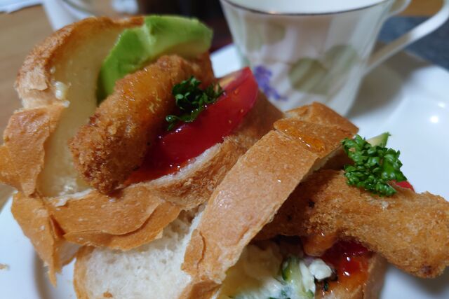 朝食はフランスパンに卵やエビフライ・アボカド乗せて。。私はこれで充分デスが‥。「パンだけでは持たない‥」杜子春。昨夜は玉ねぎの輪っかを利用したキッシュ‥。玉ねぎ大好きな杜子春は「これイケる‥」少し前には「ジャガイモ・トマト・アボカド」のチーズ焼き‥。開田高原の野菜も未だ出来ない時期‥毎日のおかず作りに苦慮します。