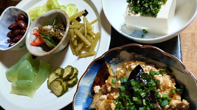 昨日も白紬のブラウス作り‥一枚目で‥色々な反省点改めて‥2枚目は糸印‥終えて‥。直ぐにミシン掛け‥裾・肩下がり・前立ても完成。脇縫いは裾バイヤスの柄を併せながら‥。結構手間が‥掛かります‥。夕方に成り‥片付けて夕食の仕度‥。「余り凝った物より何時も‥のでイイよ茄子グラタンも、今一だった(前日のグラタンの事)‥」テレビ「和田明日香」さんの「ヒジキと梅干しの炊き込みご飯」する積もりでしたが‥。止めて普通に白米炊きました‥。2000円の放出米‥やっと当選して‥。味は少し旨味足りない様ですが‥‥。それなりに美味しく戴きました。杜子春にはソーメンに餃子‥。キュウリの中華漬け‥。茄子の紫蘇の葉・鶏ミンチ挟み揚げ‥ジャーマンポテト‥。安心の味でした。